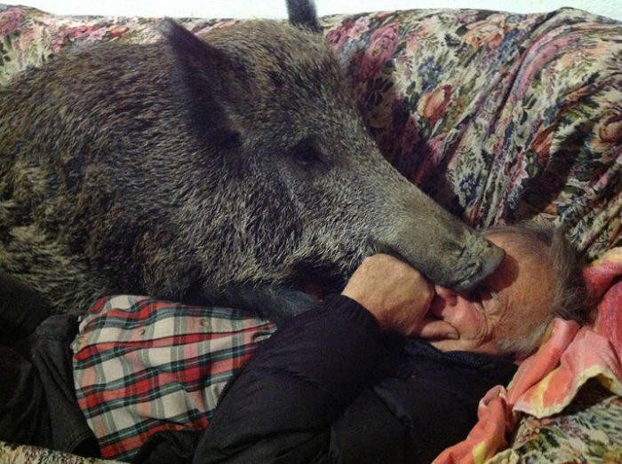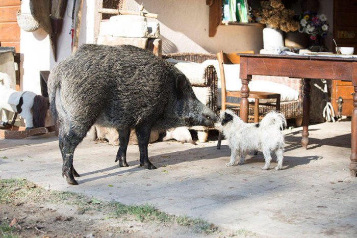 Спасенный кабан остался жить со своими спасителями