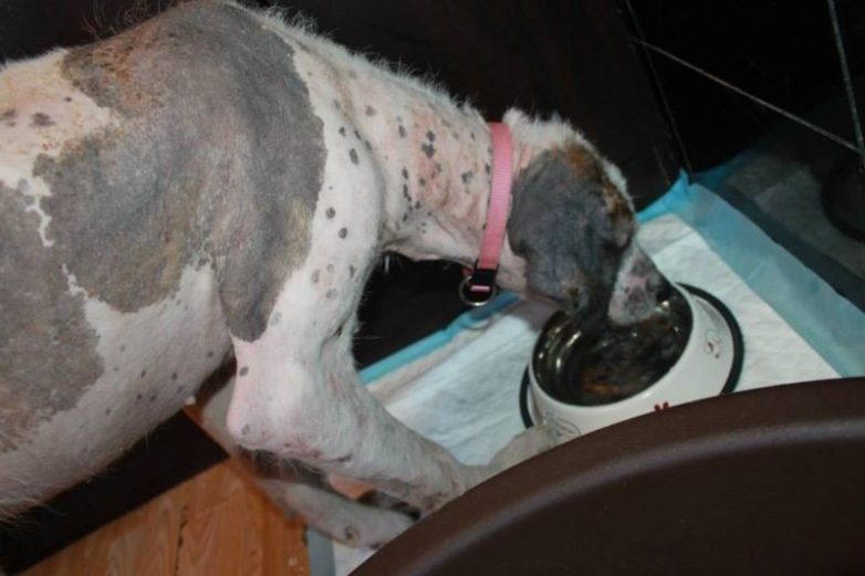 Запущенный лишай. А ещё «добрые» люди сломали лапу.