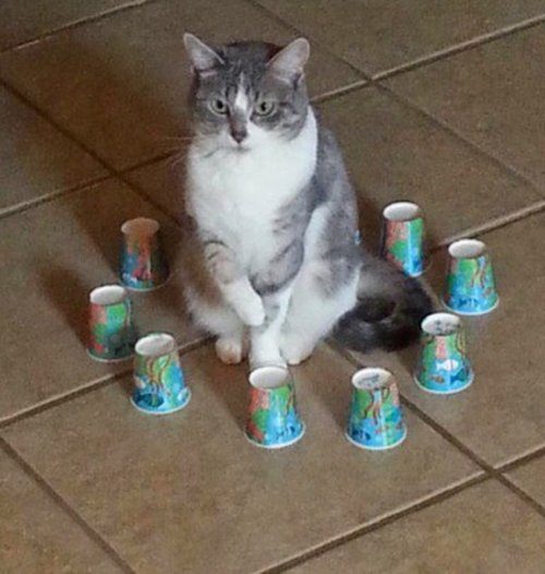 Оказывается, достаточно всего лишь окружить кошку какими-нибудь странными и непонятными ей предметами, чтобы она пришла в замешательство…