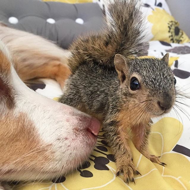 Может ли собака дружить с белкой? По идее — нет. Но время от времени случается то, что случиться никак не может и в природе накрепко притягиваются полные противоположности.