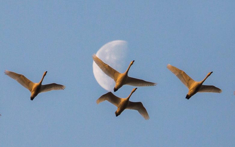 Белоголовый орлан преследует цаплю, чтобы отнять у неё рыбу. Во время погони цапля выронила свою добычу.