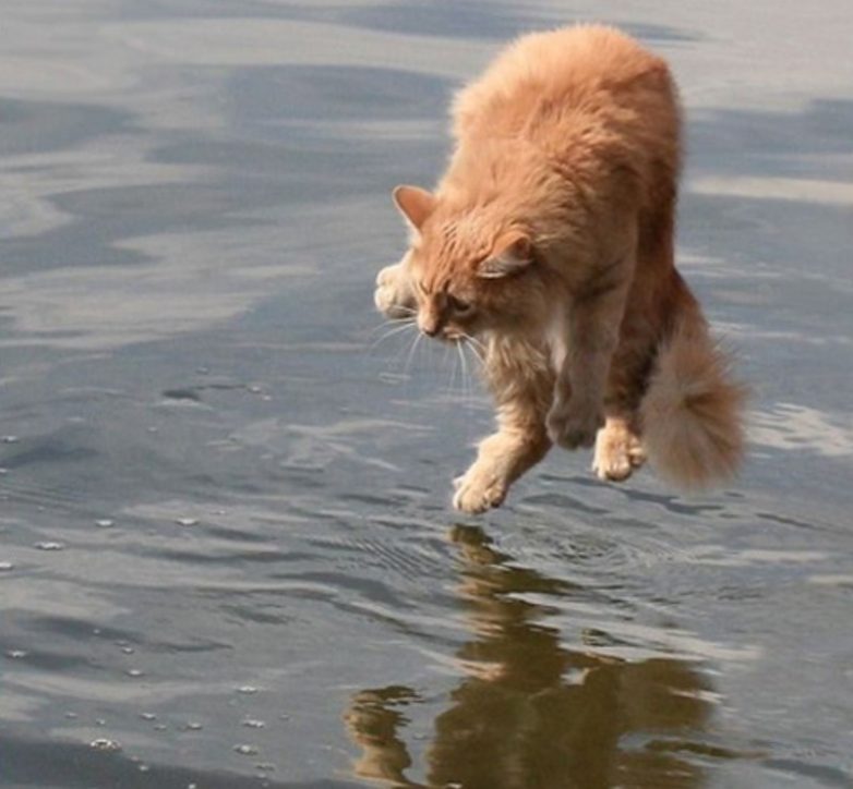 А вот у пары кошаков глаза не выражают ужас. Видать, водоплавающие! Я сам на речке возле деревни видел, как вошка вплавь рыбу ловила. И поймала!