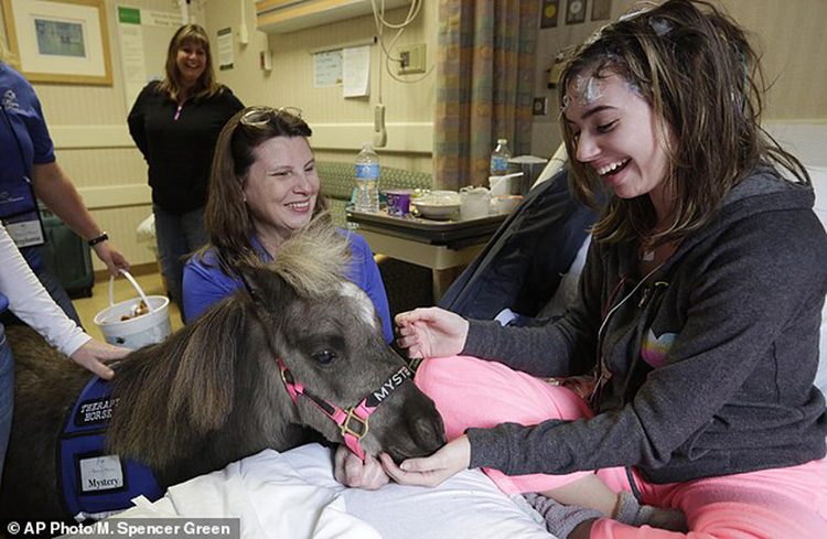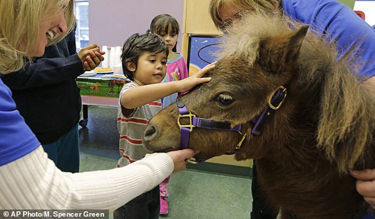 Эти крошечные очаровательные лошадки размером с крупную собаку справляются со своей миссией превосходно. Для них не требуется никаких особенных условий, и транспортировать их из клиники в клинику не составляет труда. Обычно их выращивают и тренируют на особых фермах специально для общения с больными людьми. Для того, чтобы убедиться в действенности такой «пони-терапии», достаточно посмотреть на лица пациентов.
