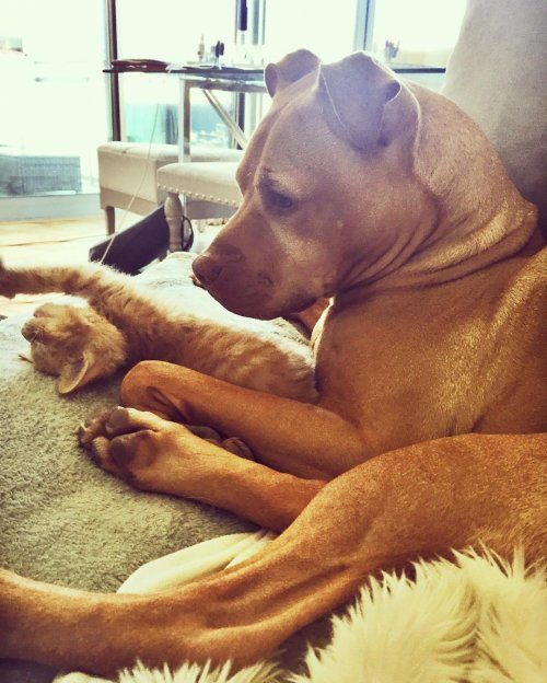 6-летний питбуль Бубба (Bubba) всегда питал слабость к кошкам.