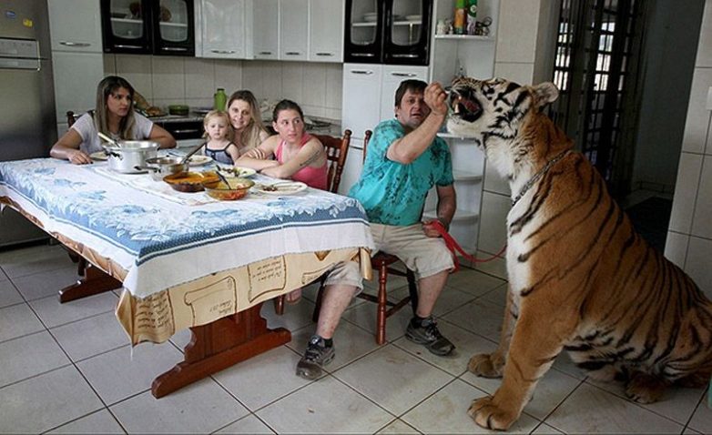 Была в советское время такая семья.Держали тигра, леопарда, ещё кого-то. Несколько лет. Закончилось ужасно. Всю семью задрали, кто-то один, по моему мать, выжила в больнице, отца дома не было, дети погибли. Вошедшие через окно военные домашний зверинец перестреляли. Подробности не помню.