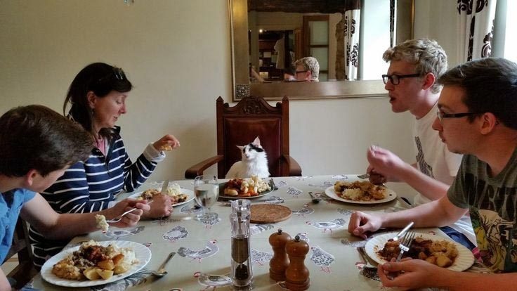 Этот кот выпьет одну стопку, а весь оставшийся вечер будет пить воду. Он знает свою меру