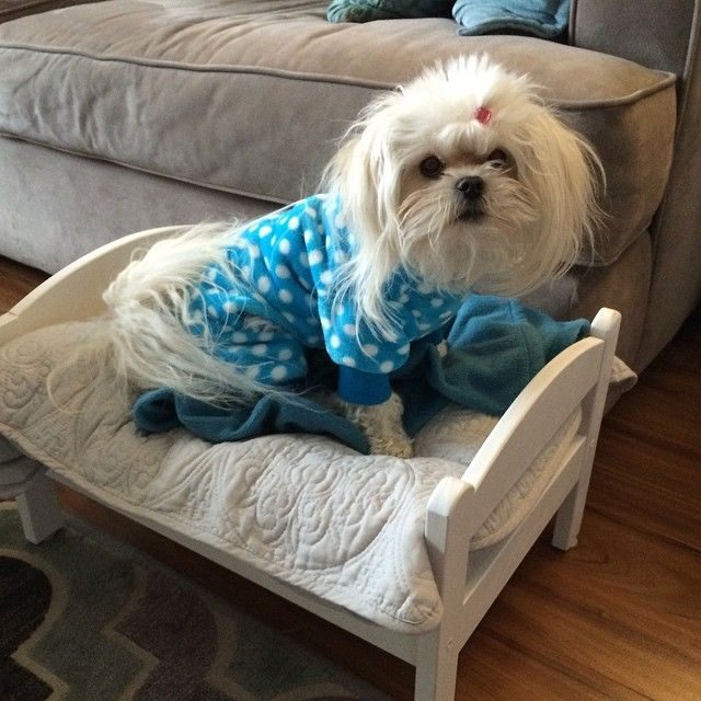 Эта красотка уже готова ложиться спать в личной кроватке