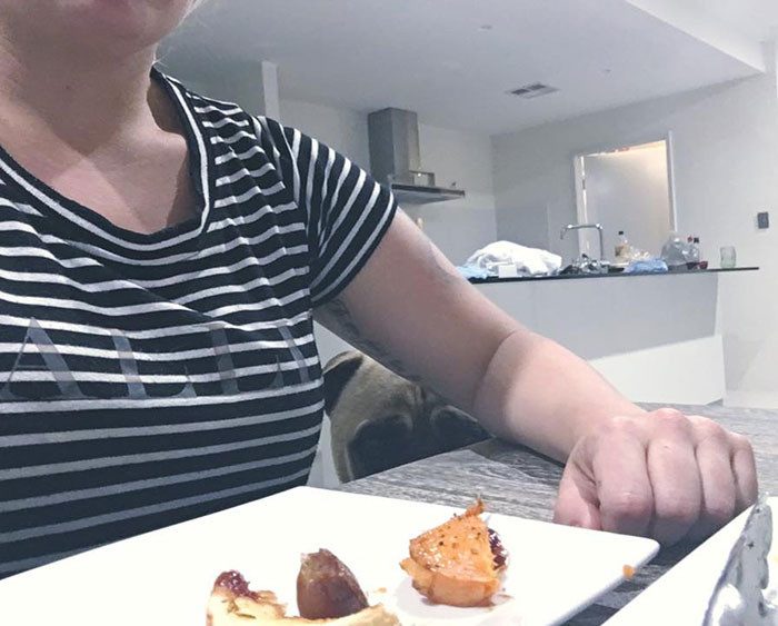 Лорен Бирни рассказывает, что питомец непрерывно смотрит на нее, при этом стараясь прятаться.