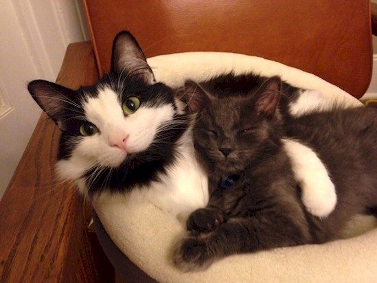 1. Этот кот настолько большой, что может стать настоящей кроватью для другого