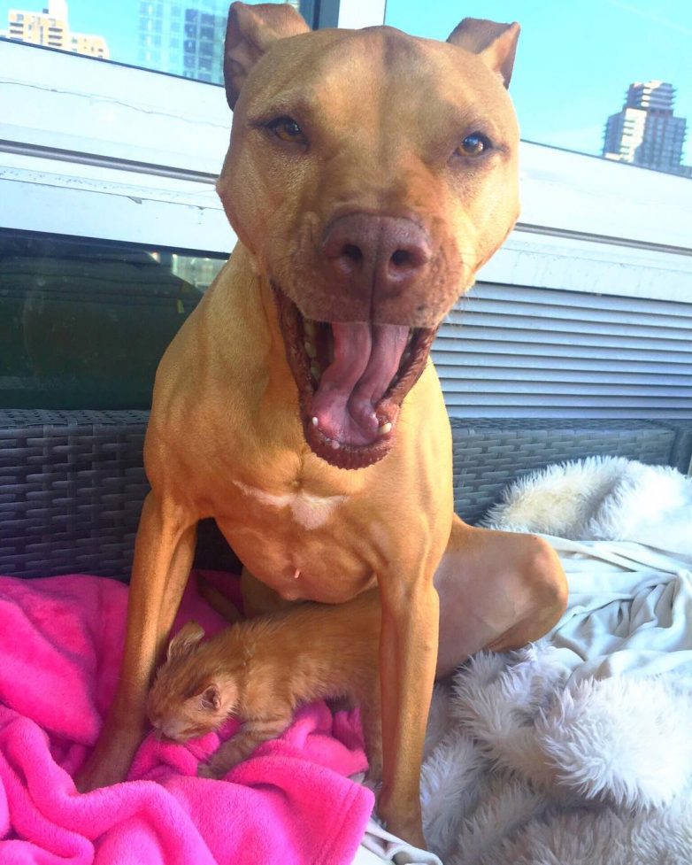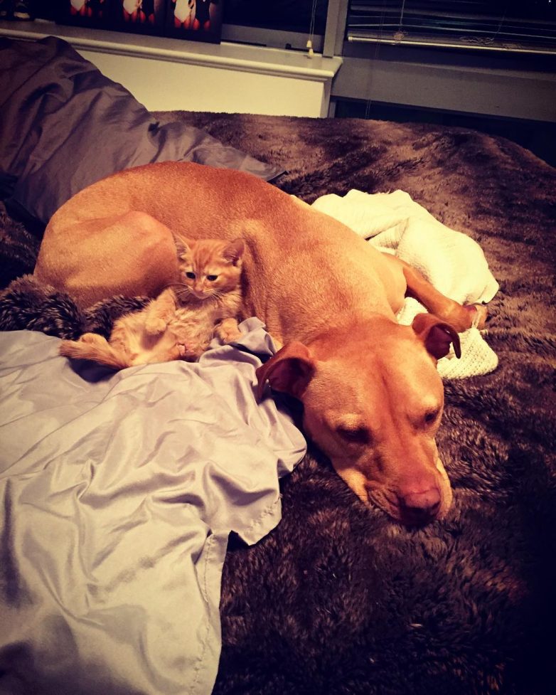 В США спасенный питбультерьер подружился с котенком, сообщает Metro. Собаку по кличке Бубба забрали из приюта в Финиксе (штат Аризона) в трехмесячном возрасте.