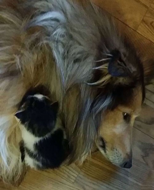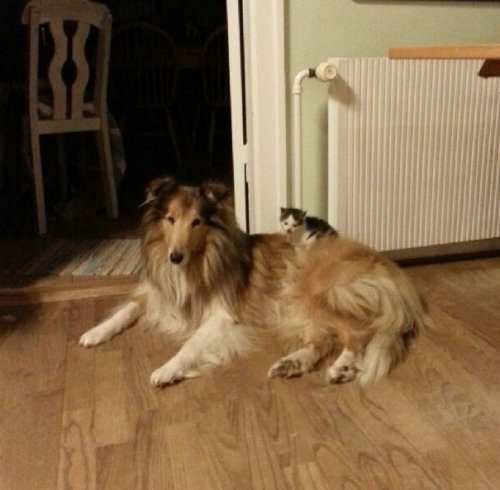 Когда этого маленького котёнка по кличке Моисей (Moses) впервые принесли в дом, он быстро подружился с домашним питомцем хозяев дома, очаровательной колли по кличке Молли (Collie Molly).