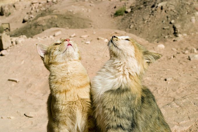 В Петре некогда снимались сцены из «Индианы Джонса», а ещё здесь обитают так называемые барханные кошки: представители этой породы как раз и изображены на картинке.