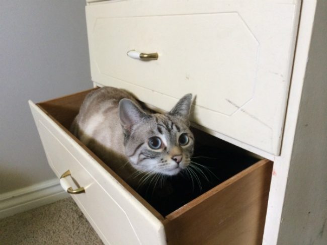 Разбирая вещи в шкафу, можно найти много интересного… и пять раз — кота.