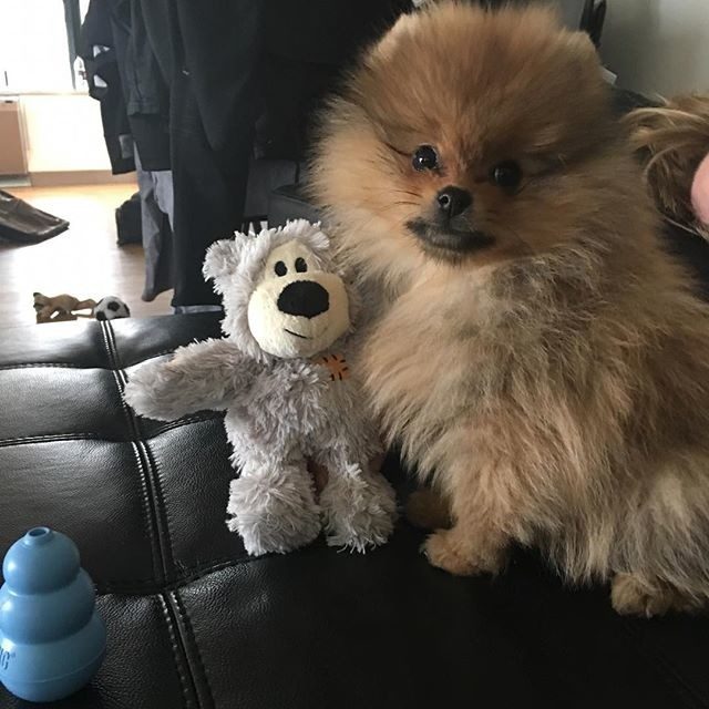 И это его новый питомец померанский шпиц по имени Астерикс.