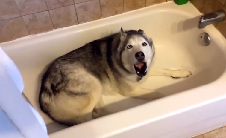 Вам понадобится огромное количество собачьего печенья, чтобы выгнать хаски по имени Зевс из ванны.