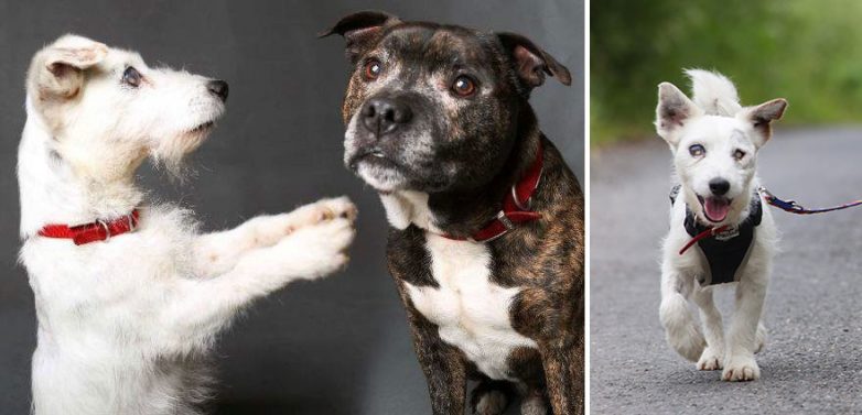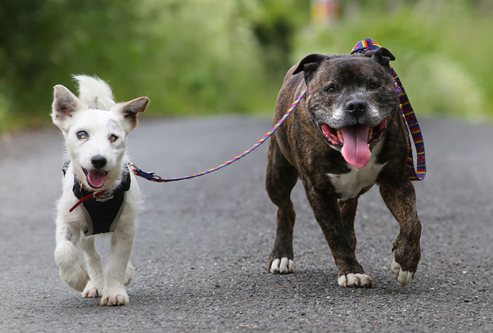 Эта неразлучная пара псов — один из самых сильных примеров дружбы двух животных. Гленн — слепая собака породы джек-рассел-терьер. Он передвигается благодаря своему другу, стаффордширскому бультерьеру Баззу. Они были найдены на севере Англии и с тех пор все время проводят вместе — поодиночке собаки не находят себе места.