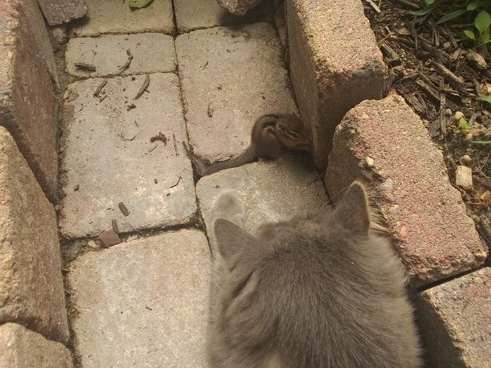 Взглянув на это фото, вы наверняка подумали о том, что бедному бурундуку сейчас придет конец, ведь рядом с ним оказался хищник.