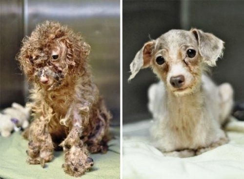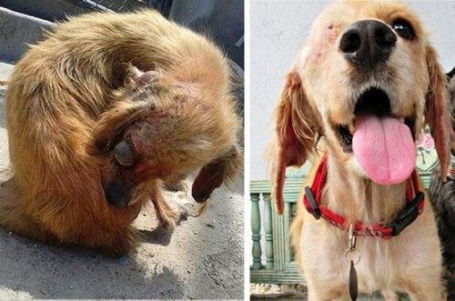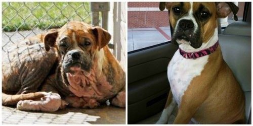 Фотографии собак, сделанные до и после того, как они обрели дом