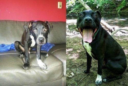 Споки, помесь лабрадора и гончей, была найдена в сельской местности в Западной Вирджинии. Несмотря на то, что эти две фотографии сделаны с разницей в один день, по довольной мордахе Споки на второй фотографии отчётливо видно, что её жизнь кардинально изменилась в лучшую сторону!