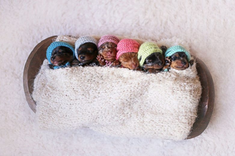 Только взгляните на эту гордую таксу и ее шестерых малышей в крошечных шапочках. Умилению нет предела!