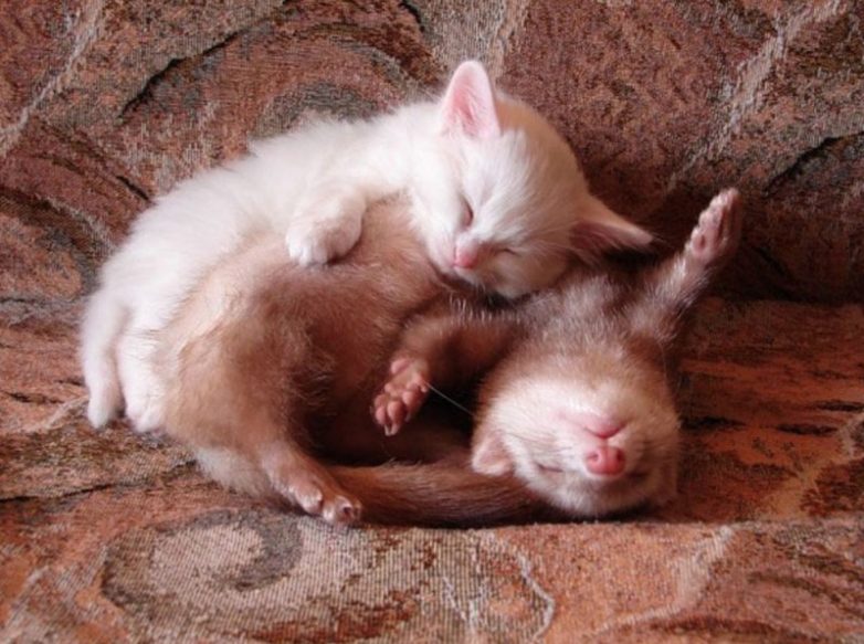 6. Котенок и морская свинка… которая никак не может заснуть, видимо.