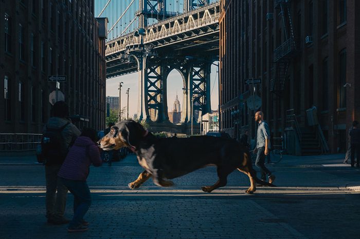 Забавные снимки собаки в Бруклине