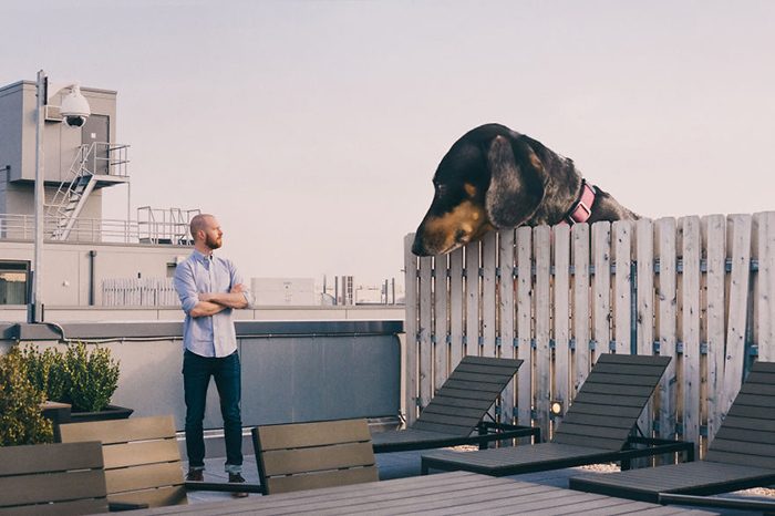 Митч начал фотографировать свою собаку несколько месяцев назад. Автор уверен, что у собаки нет никаких сомнений — она такая же, как и люди, ее окружающие. Именно поэтому Митч гиперболизирут ее размеры, и на снимках Вивиан выглядит мило и сказочно.