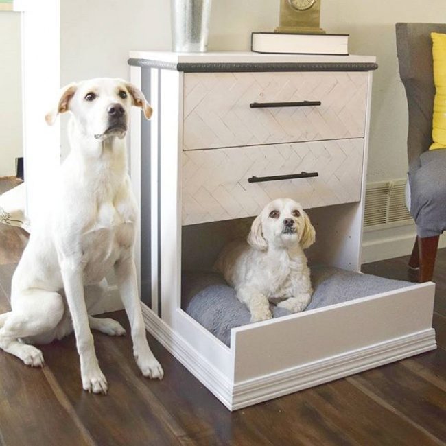 Можно сделать милую и удобную лежанку для вашего пса и спрятать ее в ящике комода.Прикроватная лестница
