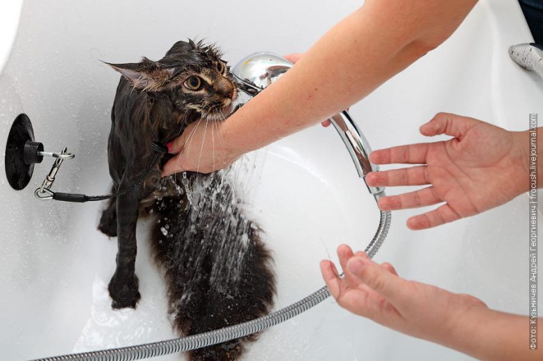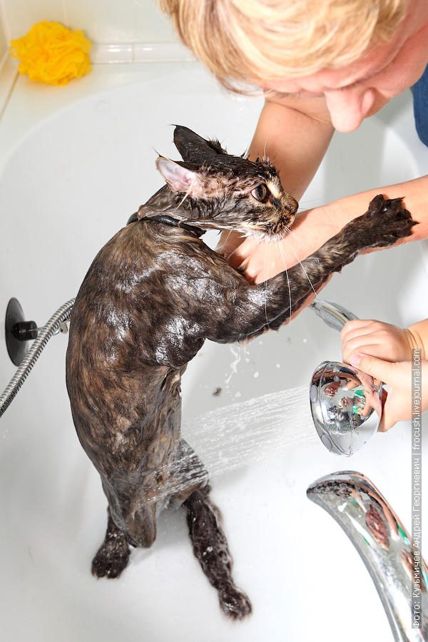 Для мытья кошки нам потребуется: ванна, теплый душ, 2-3 хорошо впитывающих влагу полотенца и 2 пары рук.