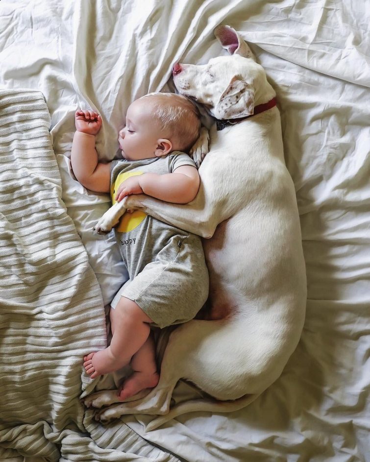 Нора — спасённая собака, ставшая лучшим компаньоном малышу