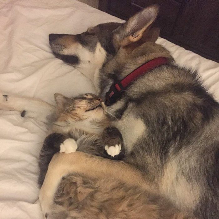 Тамасканский хаски выбрал себе собственного котенка