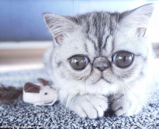 Хозяйка животного Ширли взяла котенка из приюта и его необычный внешний вид нисколько ее не смутил.