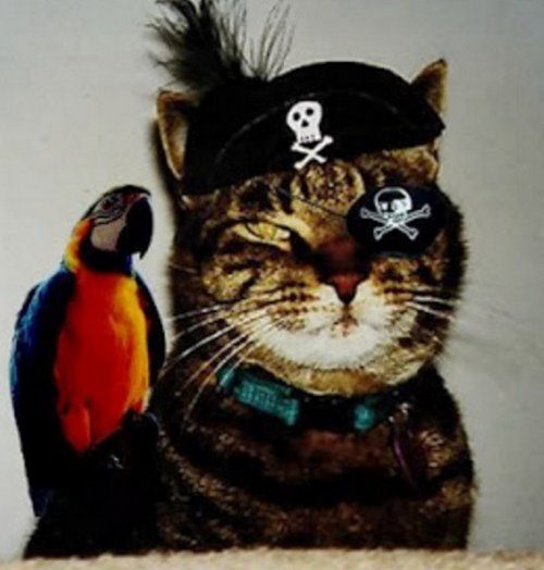 Забавная коллекция фотографий с представителями семейства кошачьих, которые мечтают выйти в море с любимым попугаем на плече: