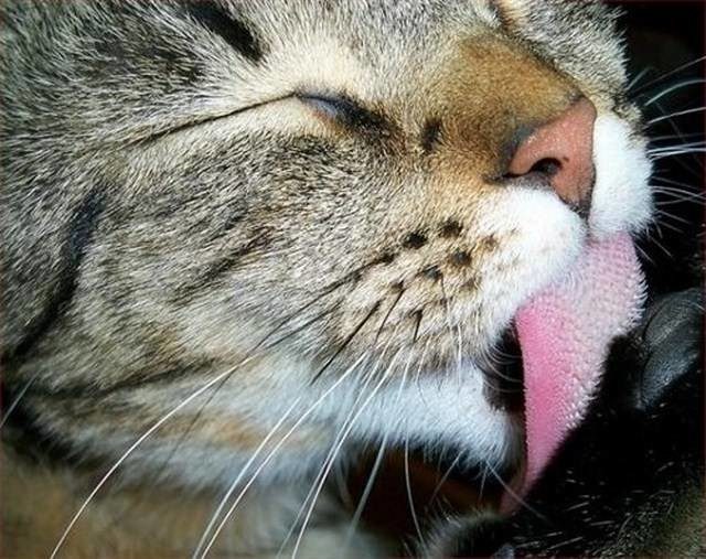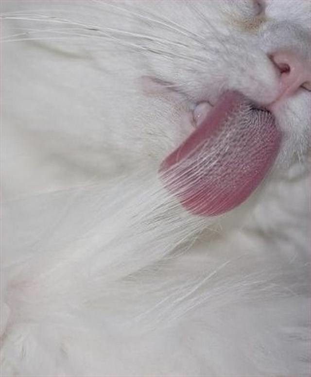 язык, как язык, чистить шерсть чем-то надо, ничего страшного, он же кошачий, если бы человеческий, то страшненький…