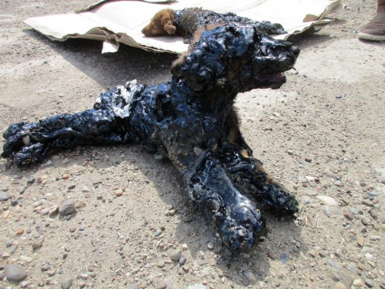 В некоторых местах гудрон уже пристал намертво, и шерсть пришлось полностью сбрить.