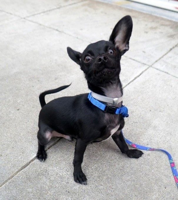 Легко понять, почему волонтёры называют эта собаку странной — просто посмотрите на её лицо!