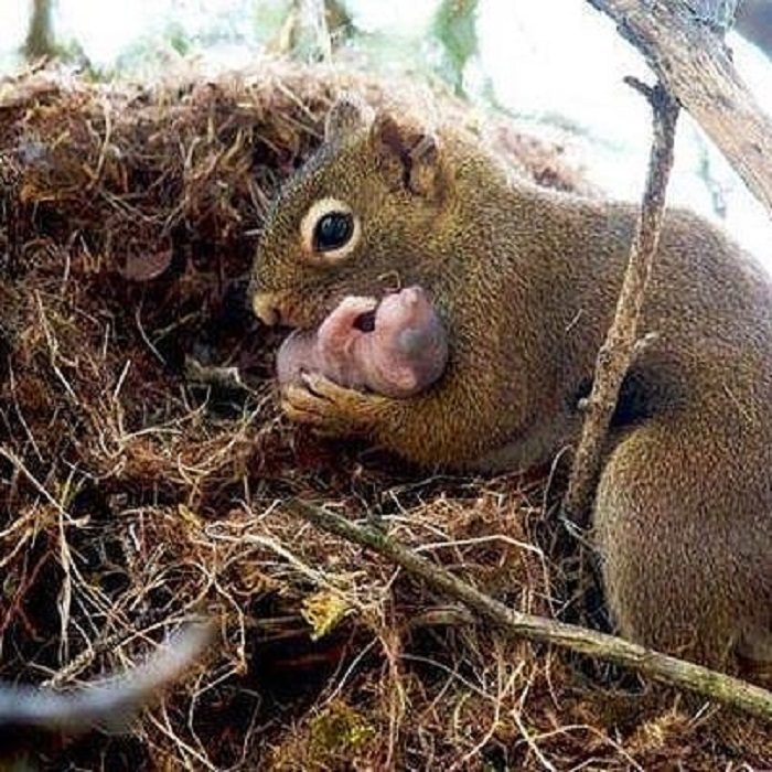 Озорница белка и ее малыши.