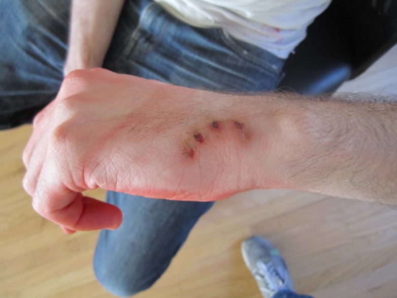 Если же на тебя напал среднеазиат или питбуль, и дело происходит летом, то болевой шок от укуса может полностью вывести тебя из строя. К тому же, перекусить кость предплечья, в общем-то, для крупной собаки не такая уж большая проблема. Поэтому речь идет именно о последнем шансе на спасение.