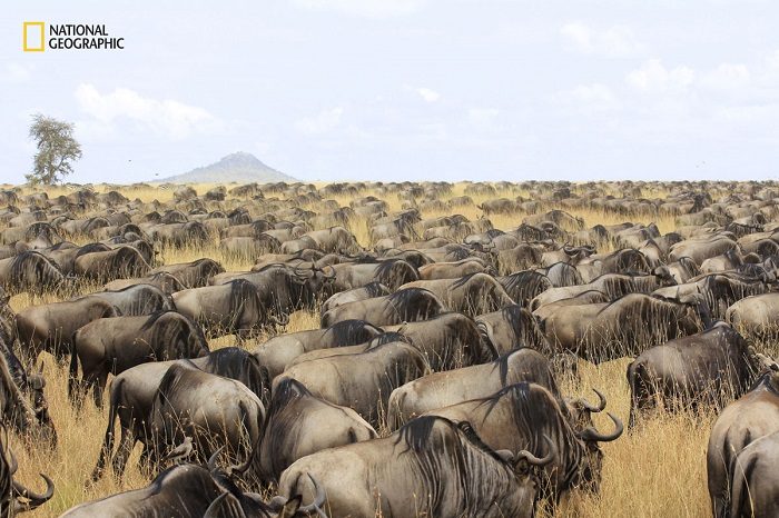Гну во время миграции в национальном парке Серенгети.
