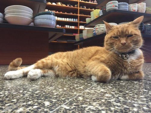 Когда этот рыжий красавец был котёнком, ему нужен был дом, поэтому один работник магазина в Чайнатауне, Нью-Йорк, решил впустить его внутрь, чтобы малышу было где жить.