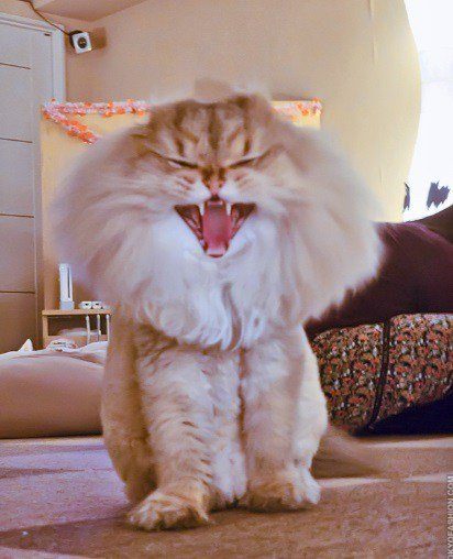 9. Этому коту, вероятно, нужно срочно найти свою расчёску, потому что если хозяева не расчешут его в ближайшее время, то его можно смело выпускать во двор в качестве сторожевого пса.