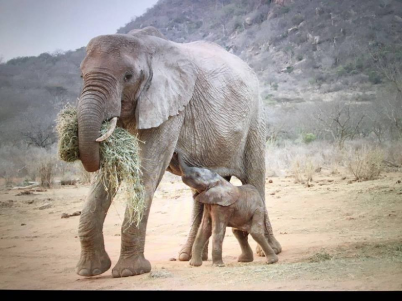 Однажды ранним утром в сентябре хранители заметили Галану и группу слонов за забором. Подойдя ближе, они увидели рядом с Галаной малыша. Ребенок родился всего несколько часов назад, а это означало, что Галана родила поблизости.