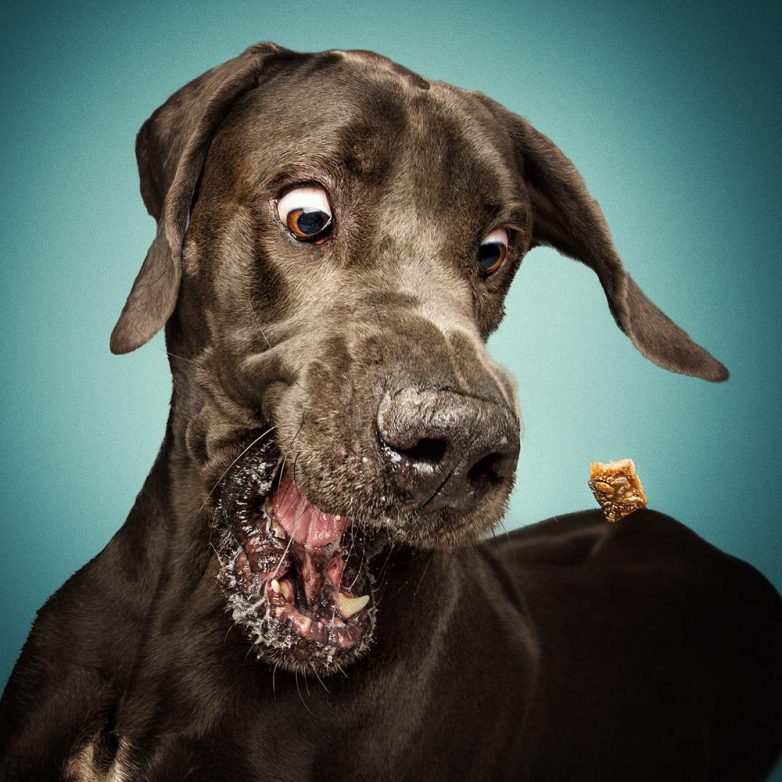 Фотограф Кристиан Филер (Christian Vieler) из Вальтропа (Германия) создает комические фотографии собак, пытающихся словить пастью еду.