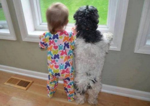 Наблюдая за домашним питомцем и маленьким ребёнком, можно заметить, что собака со временем начинает копировать всё, что делает малыш.