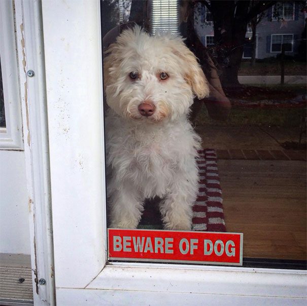 В этой подборке мы собрали фотографии табличек «Осторожно, злая собака» вместе с самими «злыми собаками». Не знаем как вы, а мы бы с удовольствием поближе познакомились с этими «свирепыми зверюгами»:
