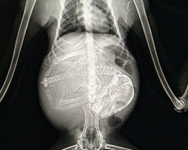 Так выглядят рентгеновские и ультразвуковые снимки беременных животных.