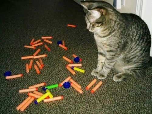Какие же они прелести ))) Мой кошак тоже прятал всякие вещи, которые ему приглянулись ))) Но я забирал у него только то, что мне действительно было нужно, а всё остальное оставалось в его распоряжении ))) Всё-таки, его же добыча, как говорится )))