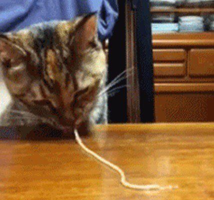 Эта кошка может запросто стащить 60 сантиметров спагетти с вашей тарелки!