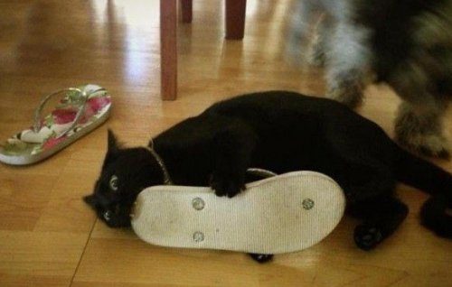 Этот злой кот съест и вашу душу! В любом случае, вьетнамку или сандалию уж точно!