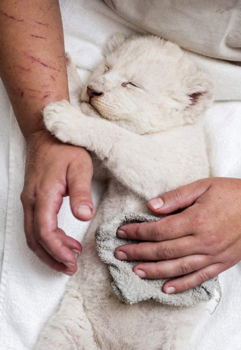 Спокойной ночи. 5-недельный белый лев. Точнее, львица.